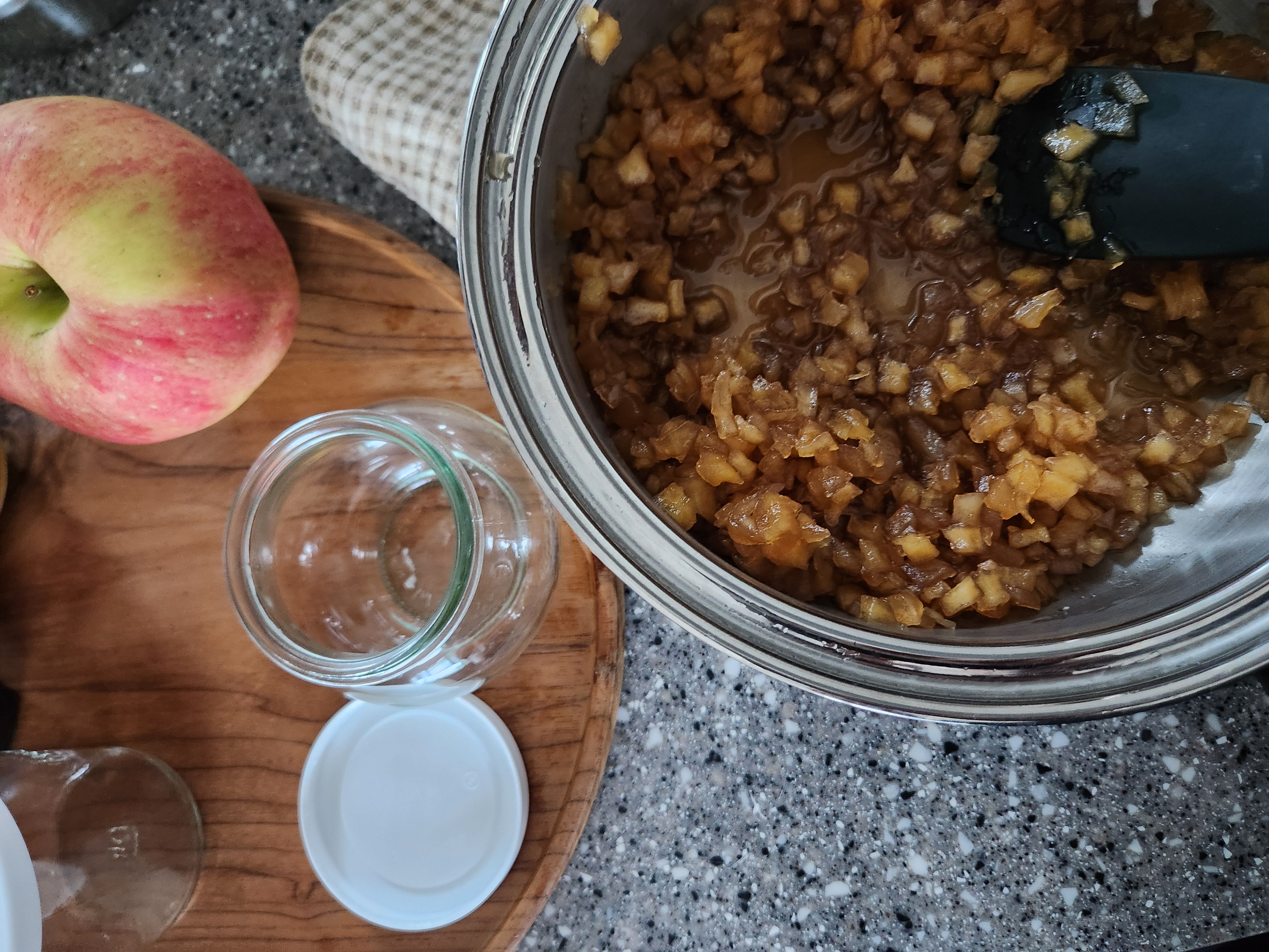 - 사과가 부드러워지기 전까지는 자주 저어주면서 사과가 눌어붙지 않게 주의한다.