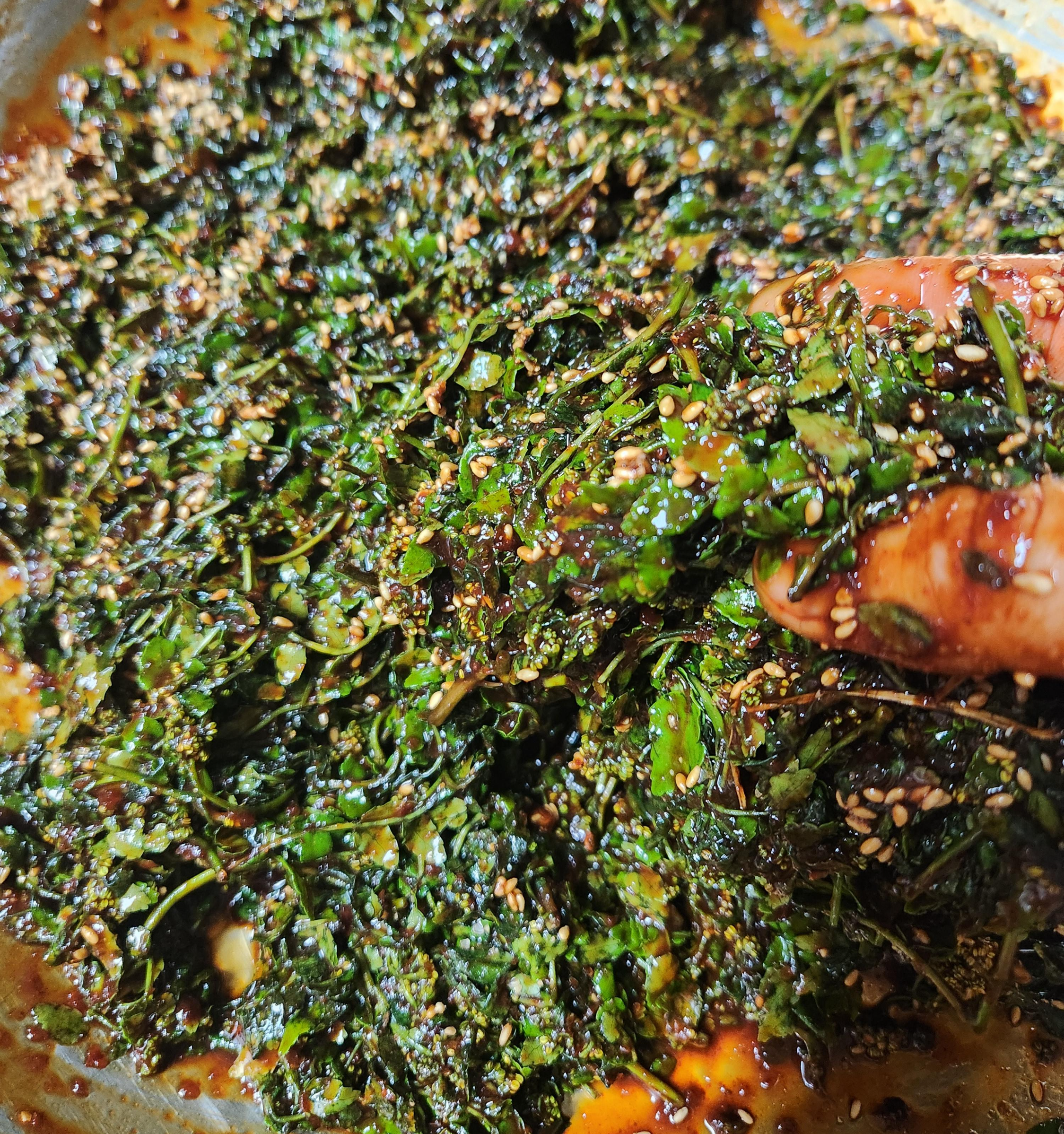 7. 4번 절인 제피잎과 6번 소스를 잘 버무려준다.