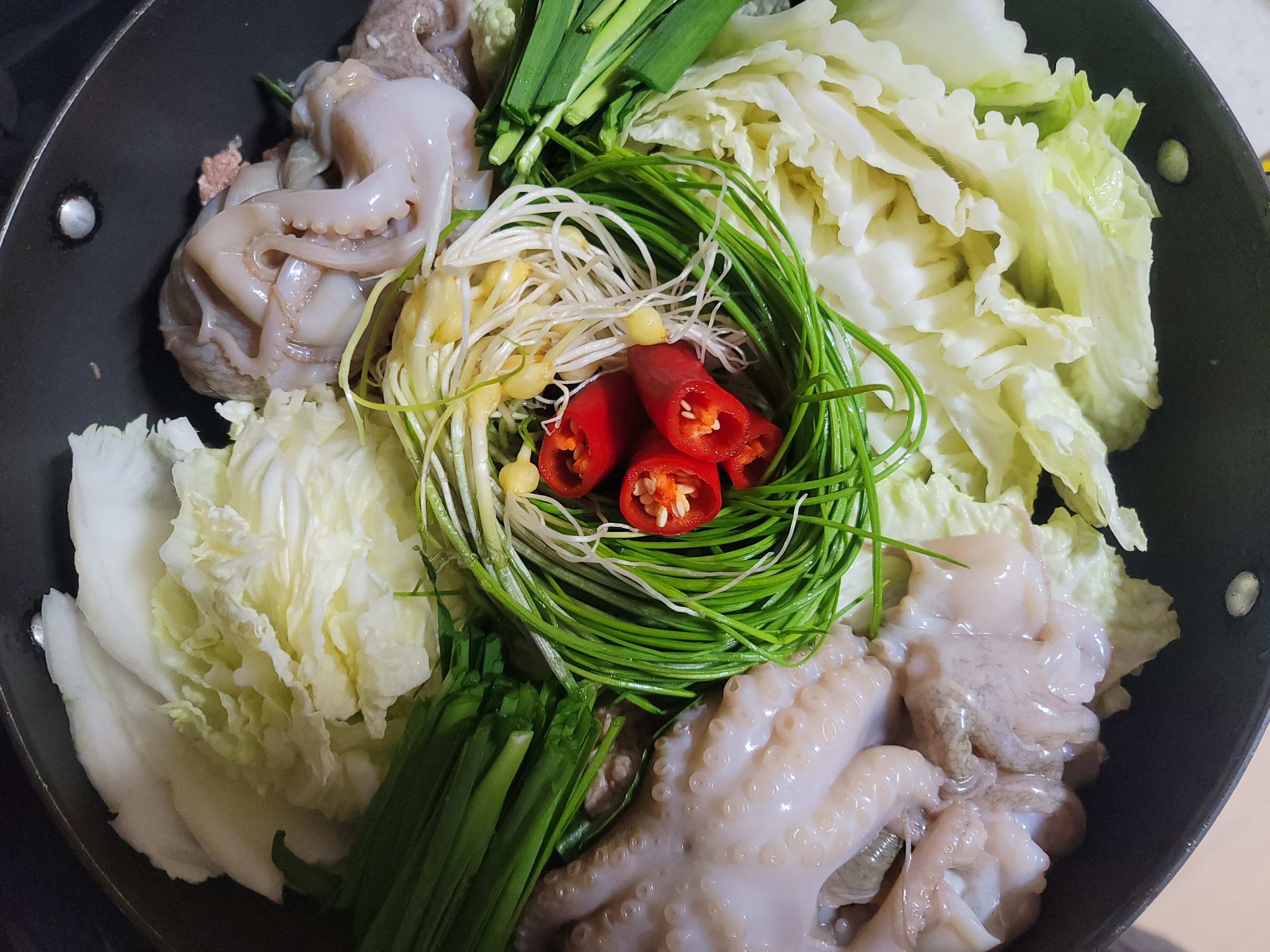 : 채수 (양파 다시마 감자 등 우려낸 물 - 미리 준비해둘 것)